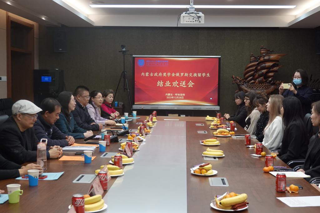 BV伟德中国官方网站于2023年12月28日下午在赛罕校区文史楼二号会议室举办了2023届俄罗斯交换留学生结业欢送会。BV伟德中国官方网站党总支书记屈原、院长武海燕、副院长张磊、副院长郑月锋、学院相关老师们和10名俄罗斯留学生参加了会议。会议由三月老师主持。