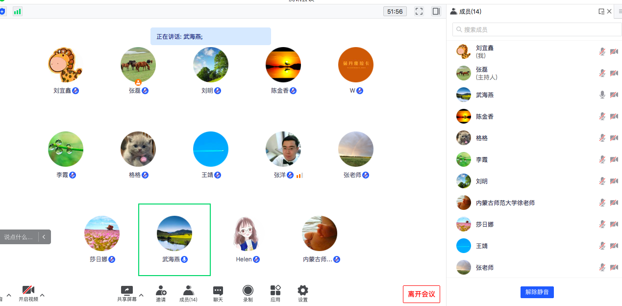 接下来三位导师分别就自己的听课情况进行了总结汇报。首先,导师张瑞芳指出青年教师莎日娜所教授的“旅游英语”课程在教授过程中教学目标明确,能够较好的契合课程思政的要求。在课堂教学组织过程中莎老师和学生在讨论区进行了积极的互动,充分提高了学生的学习积极性。同时张老师还指出莎日娜老师可以在教学过程中增加检测评价环节,以确保教学目标顺利达成,并检测学生对于这节课的学习效果。针对乌日勒老师的“韩语语音”课程,张老师建议青年教师在教学过程中可以多增加与学生的互动练习,确保学生能够标准的掌握韩语的语音发音。在对张洋老师的“国际化课程学习技能”课程进行点评时,张老师强调了课程内容的有效编排以及课程思政的拓展,同时也提出了需要多增加互动练习以及学生互评的建议。