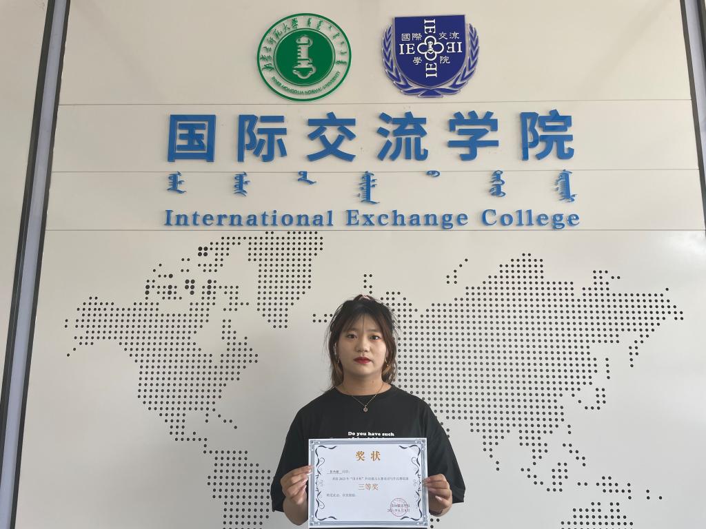从左到右分别是演讲比赛三等奖获得者杨璞、白韵琪、辛硕