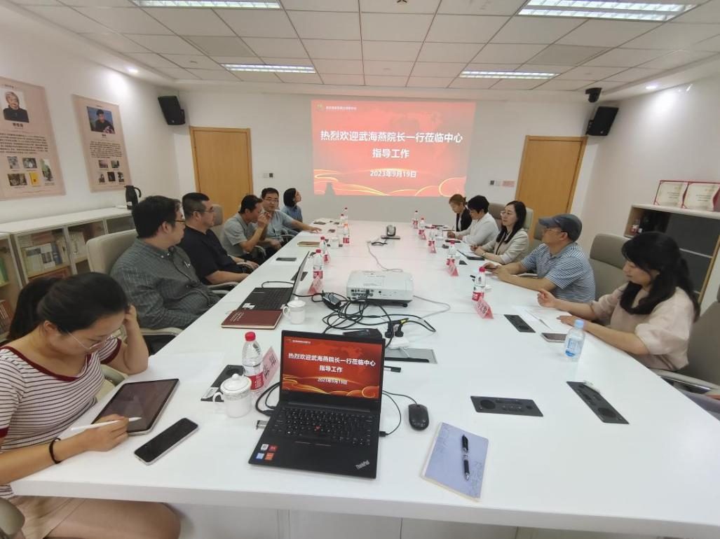 随后,调研组转至语言资源高精尖创新中心进行考察,中心主任荀恩东、副主任刘晓海及相关研究人员参加了座谈。副主任刘晓海和研究员饶高琦分别详细介绍并演示了北语自主研发的国际中文智慧教学平台(2.0版本)。双方就合作研究、共享资源等方面达成了初步意向,为学术交流和研究合作打下了坚实基础。