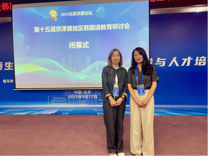2025年9月21日,第十五届京津冀地区韩国语教育研讨会在对外经济贸易大学成功举办。本届会议以“跨区域协同、跨学科融通:面向新质生产力发展的韩国语专业建设与人才培养”为主题,汇聚了来自京津冀等地区多所高校的专家学者。伟德官网两位应邀参会,并分别参与了专题论坛的交流活动。