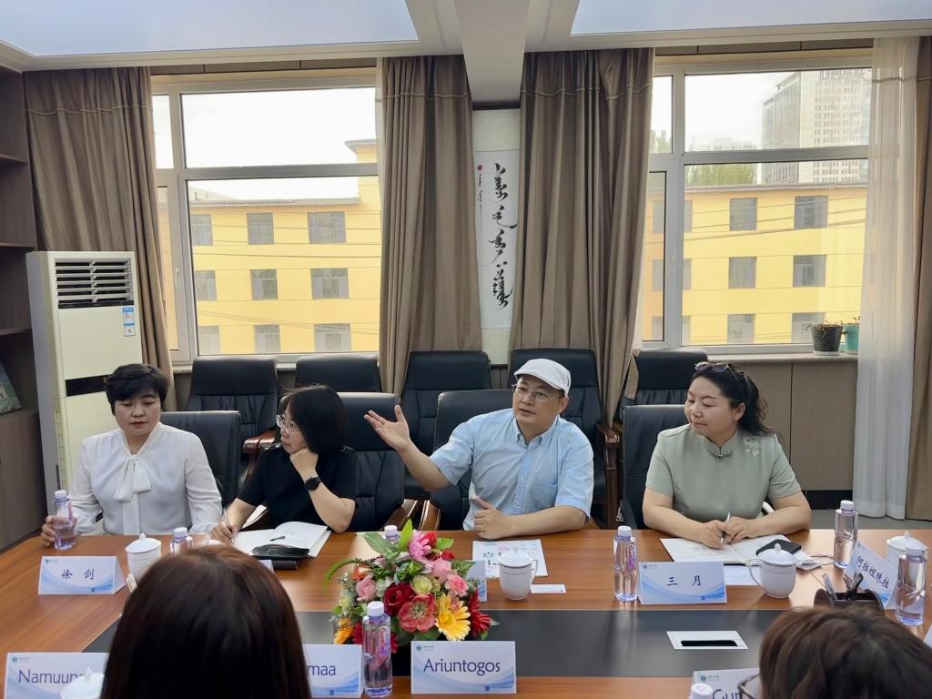 张磊副院长对蒙古国科技大学来访人员表示欢迎,并从学院基本情况、留学生教育、国内生教育、中外合作项目等方面介绍了伟德官网的概况,详细说明了中国政府奖学金、内蒙政府奖学金、自费生等留学生招生方式和渠道。敖德玛副教授就交换生、韩语专业合作等方面表达了希望与伟德官网开展深入合作的意愿。