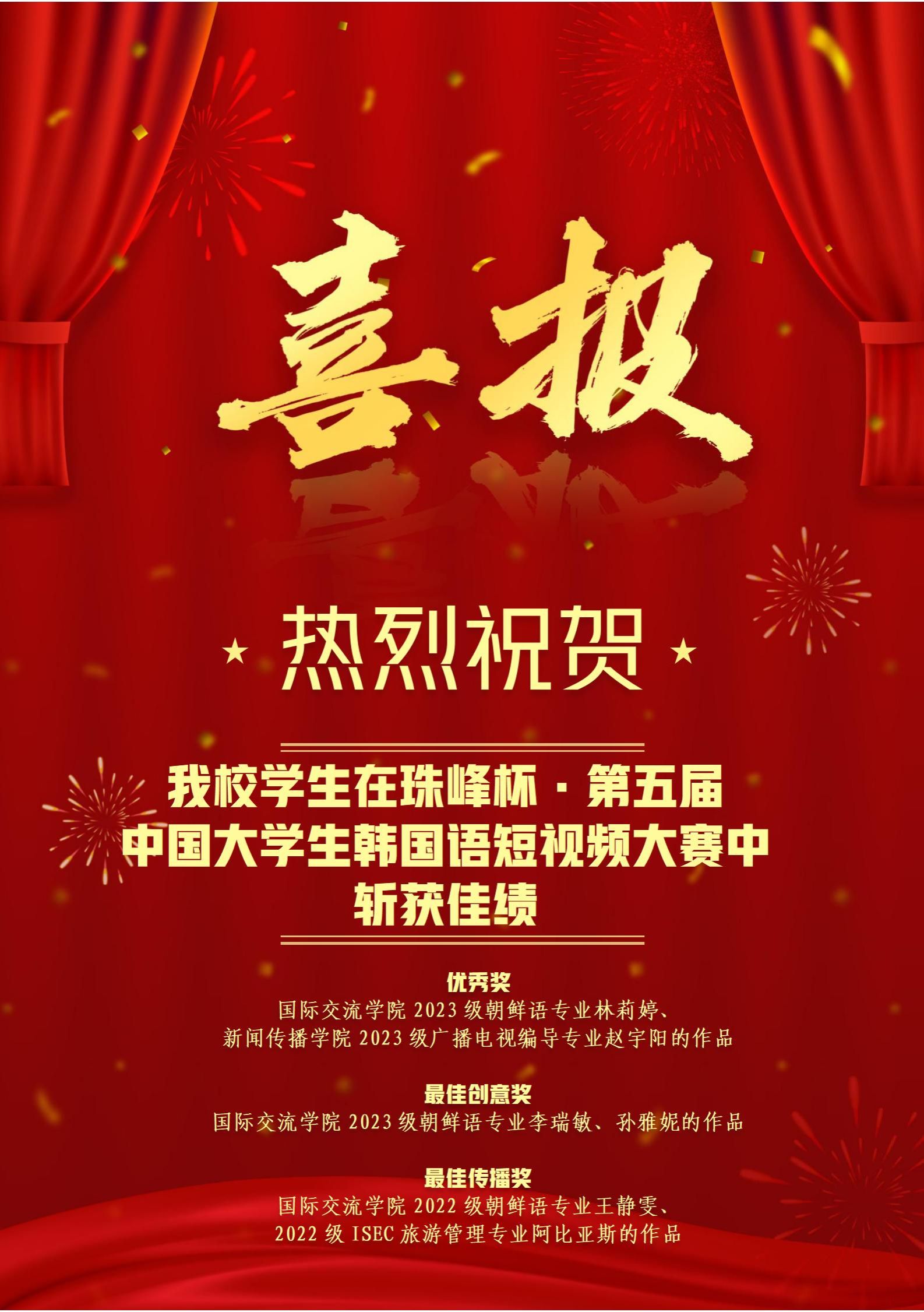 伟德官网学子在珠峰杯·第五届中国大学生韩国语短视频大赛中喜获佳绩