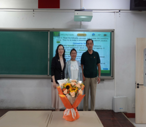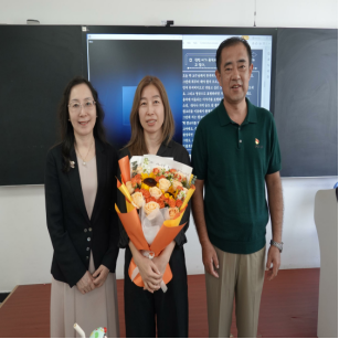 接着院领导向荣退教师三月老师赠送鲜花。三月老师表示感谢学院领导和全院教师在工作期间的支持和帮助,感受到学院温暖的氛围,表示会继续关注学院发展,为学院贡献力量。