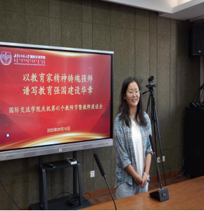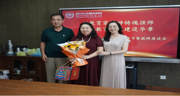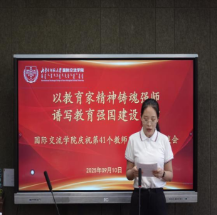 为热烈庆祝第41个教师节,弘扬“以教育家精神铸魂强师,谱写教育强国建设华章”,加强对教师的关心关爱。9月10日上午,国际交流学院在赛罕校区文史楼会议室召开庆祝第41个教师节暨全院教师座谈会。学院领导班子全体成员和学院新入职青年,荣退教师及全院在职教师参加会议。