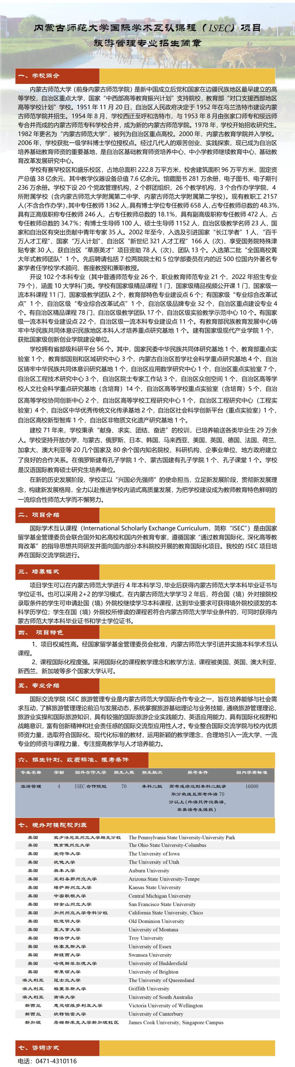 2023年ISEC旅游管理招生简章